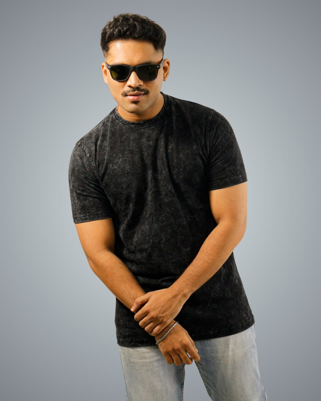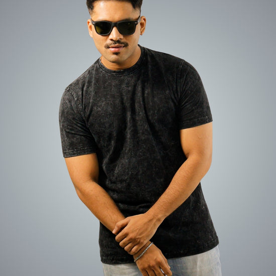 Acid Wash - Black Regular Fit Tshirt For Men