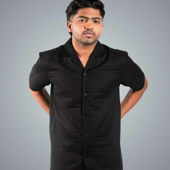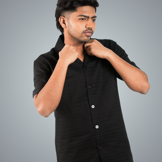 Make a bold statement with the Black Double Cloth Oversized Shirt, designed for unmatched style and comfort. Crafted from 100% cotton with double cloth micro-stitched together, it offers a soft, breathable feel that's perfect for all-day wear. Its oversized fit adds a modern edge, making it a versatile choice for casual outings or layered streetwear looks