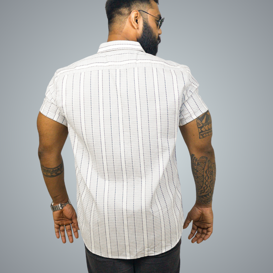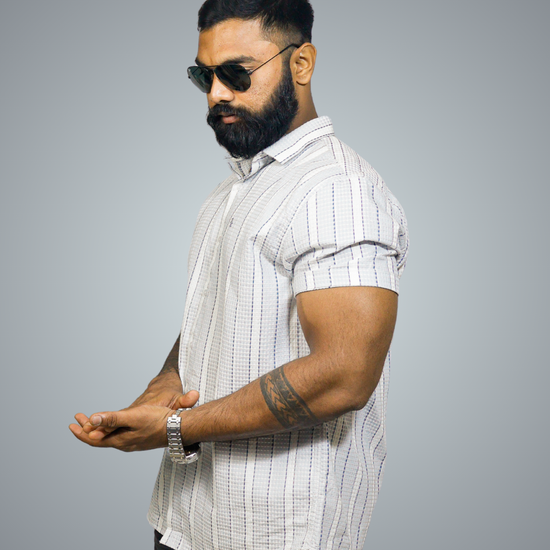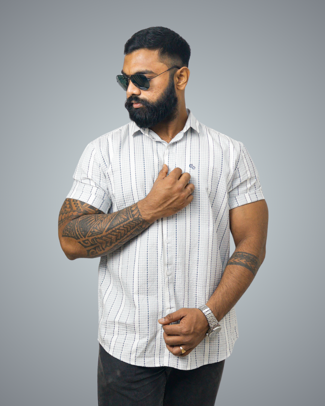 Upgrade your casual wardrobe with this classic Blue Line Pattern shirt, ideal for any casual outing. Crafted from 100% pure cotton, it delivers unmatched comfort and breathability, making it a reliable choice for all-day wear. Effortlessly versatile, it’s perfect for dressing up or keeping it relaxed while exuding a timeless style.