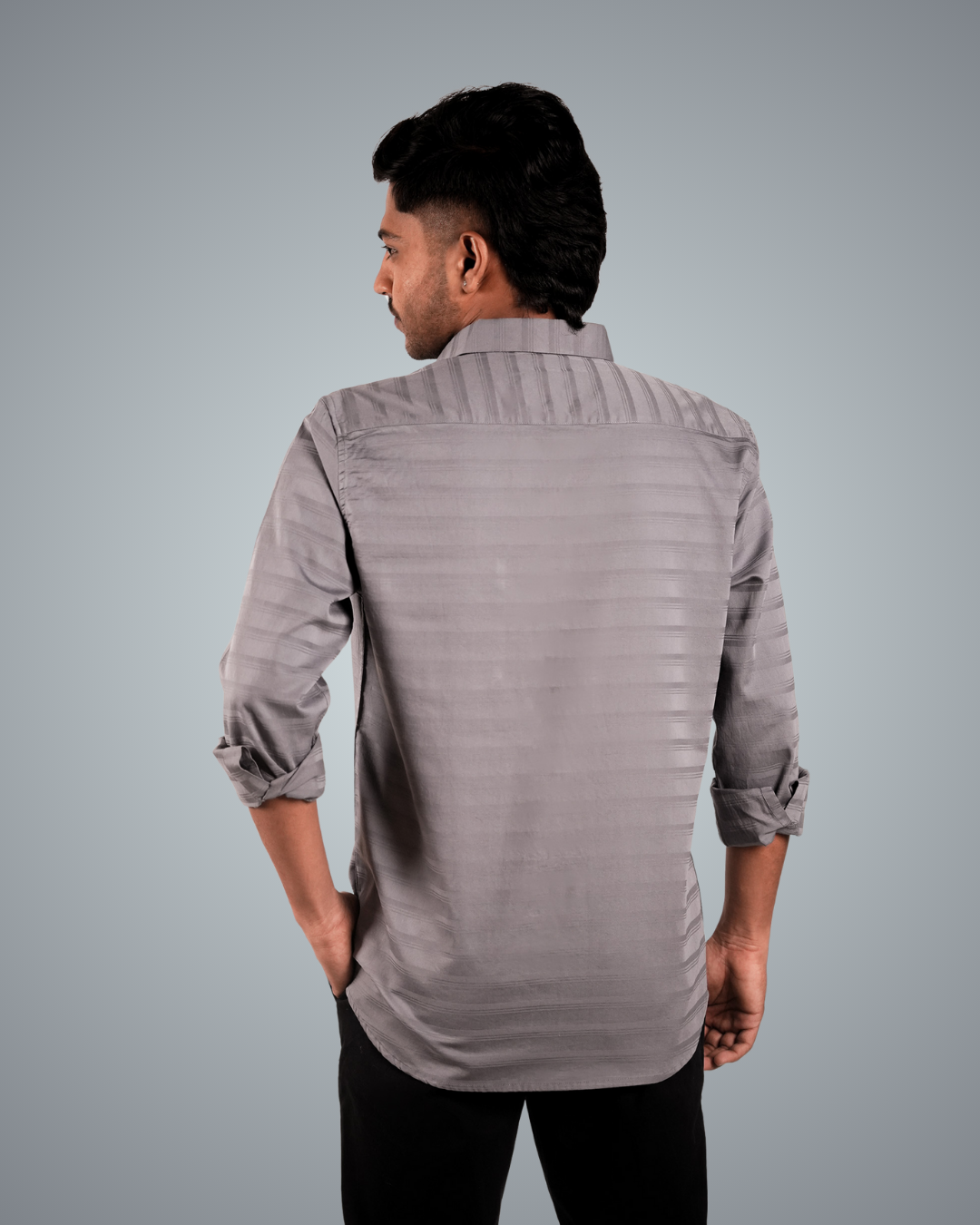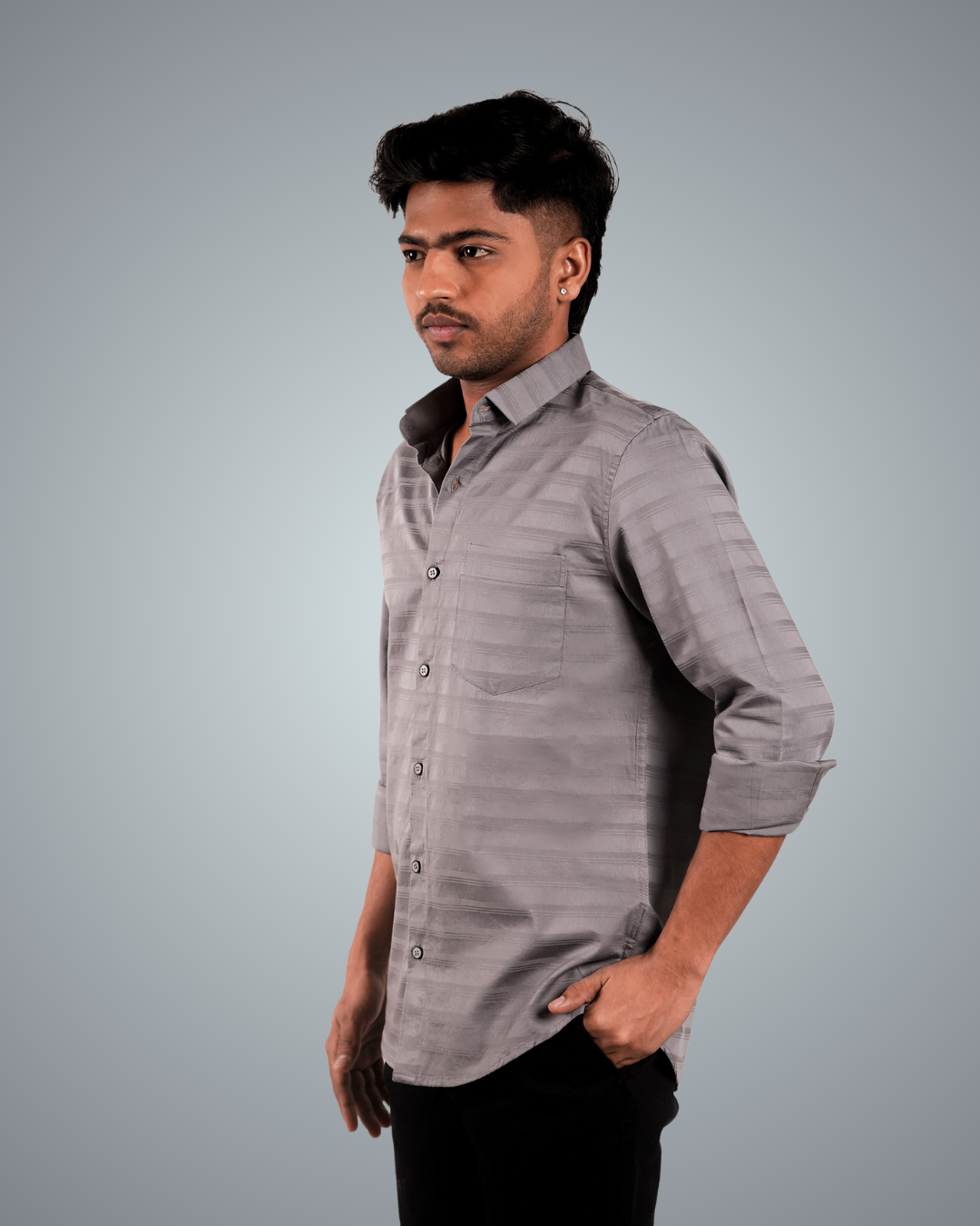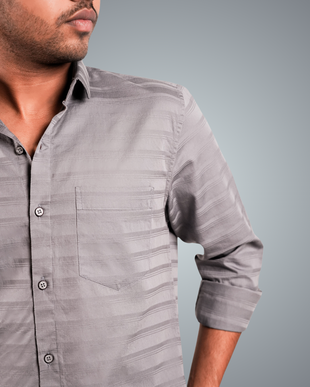 Elevate your style with the Grey Uneven Stripe Regular Fit Shirt, perfect for both casual and formal occasions. Made from 100% premium cotton, it offers superior comfort and breathability for all-day wear. Featuring a unique uneven stripe pattern in grey, this versatile shirt adds a modern and sophisticated touch to your wardrobe.