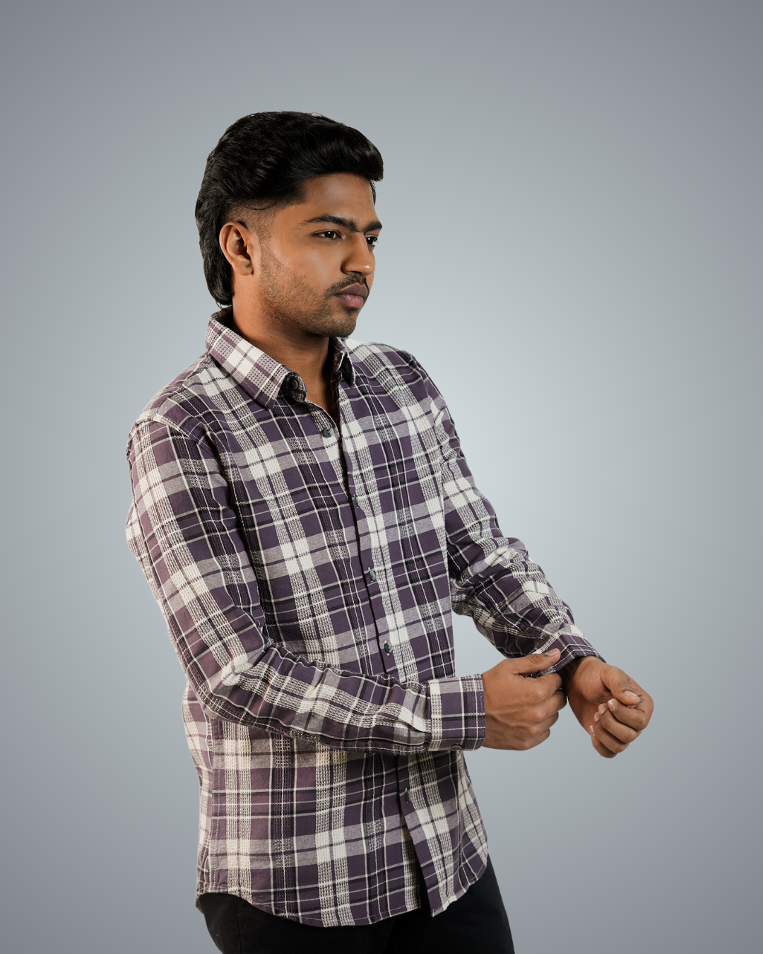 Add a timeless piece to your collection with the Jet Purple Brushed Checks Regular Fit Shirt, designed for both casual and formal occasions. Made from 100% premium cotton, its brushed finish provides enhanced comfort and a soft touch, perfect for all-day wear. The classic green check pattern offers a versatile and refined look, ideal for any setting.