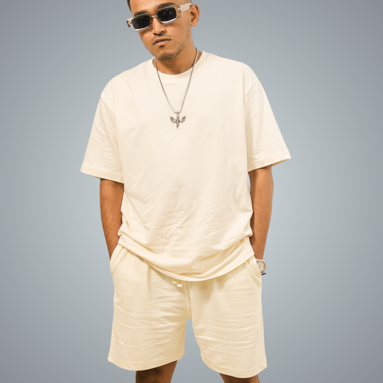 Made from premium 100% pure cotton, this set features a 210 GSM heavyweight T-shirt paired with matching cotton shorts—perfect for staying cool and stylish on warm days. The T-shirt offers a structured yet breathable feel, while the relaxed-fit shorts provide ease of movement with a soft, natural finish. Whether you're lounging at home or stepping out for casual plans, this co-ord set delivers a clean, minimal look that keeps you feeling fresh and confident.