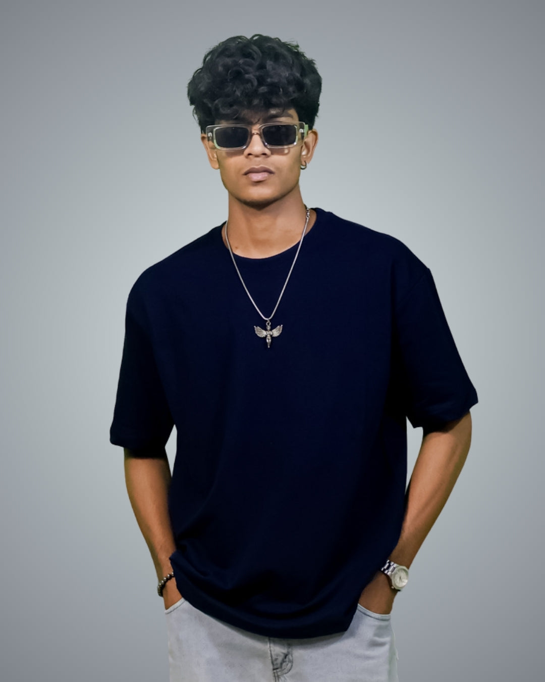 Navy Oversized Fit Tshirt For Men