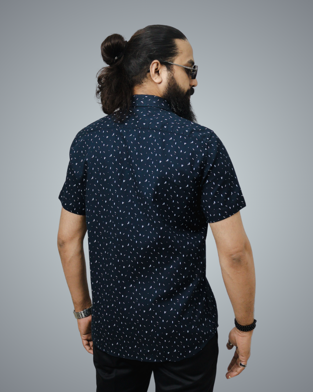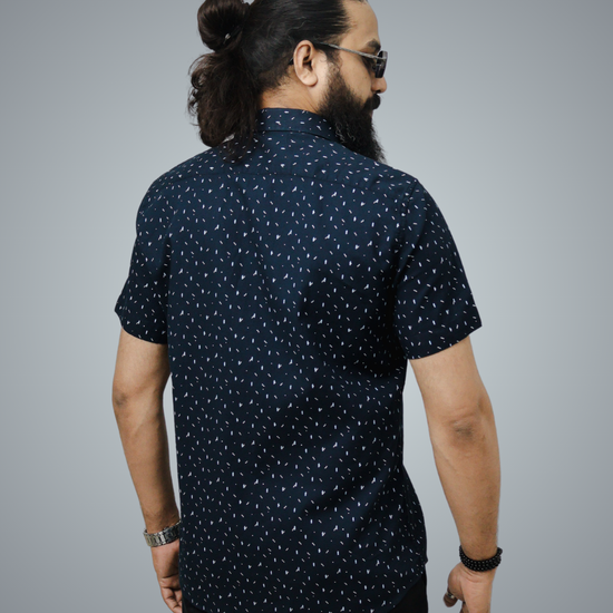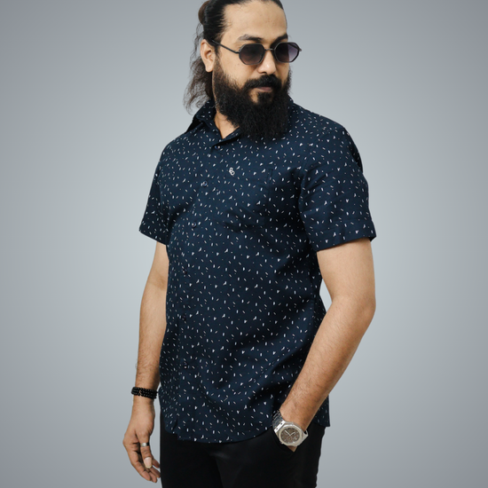 Enhance your casual wardrobe with this Navy Blue Dot Print Shirt, made from 100% pure cotton for exceptional comfort. Featuring short sleeves, it's perfect for warm days and adds a playful vibe to your style. Whether it's brunch or a casual outing, this versatile shirt is a wardrobe essential.