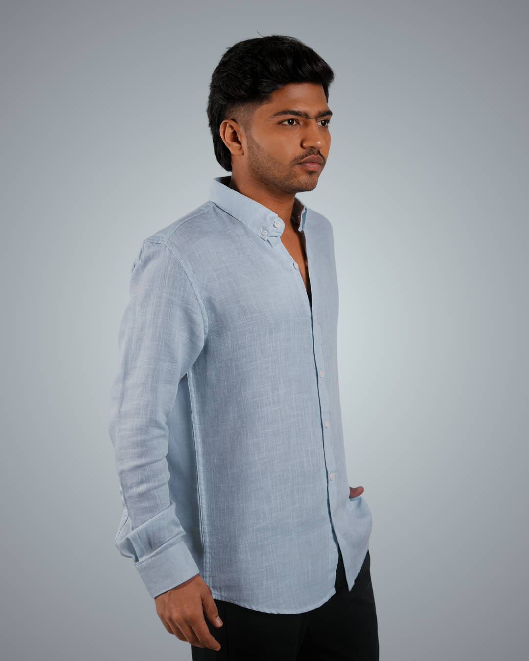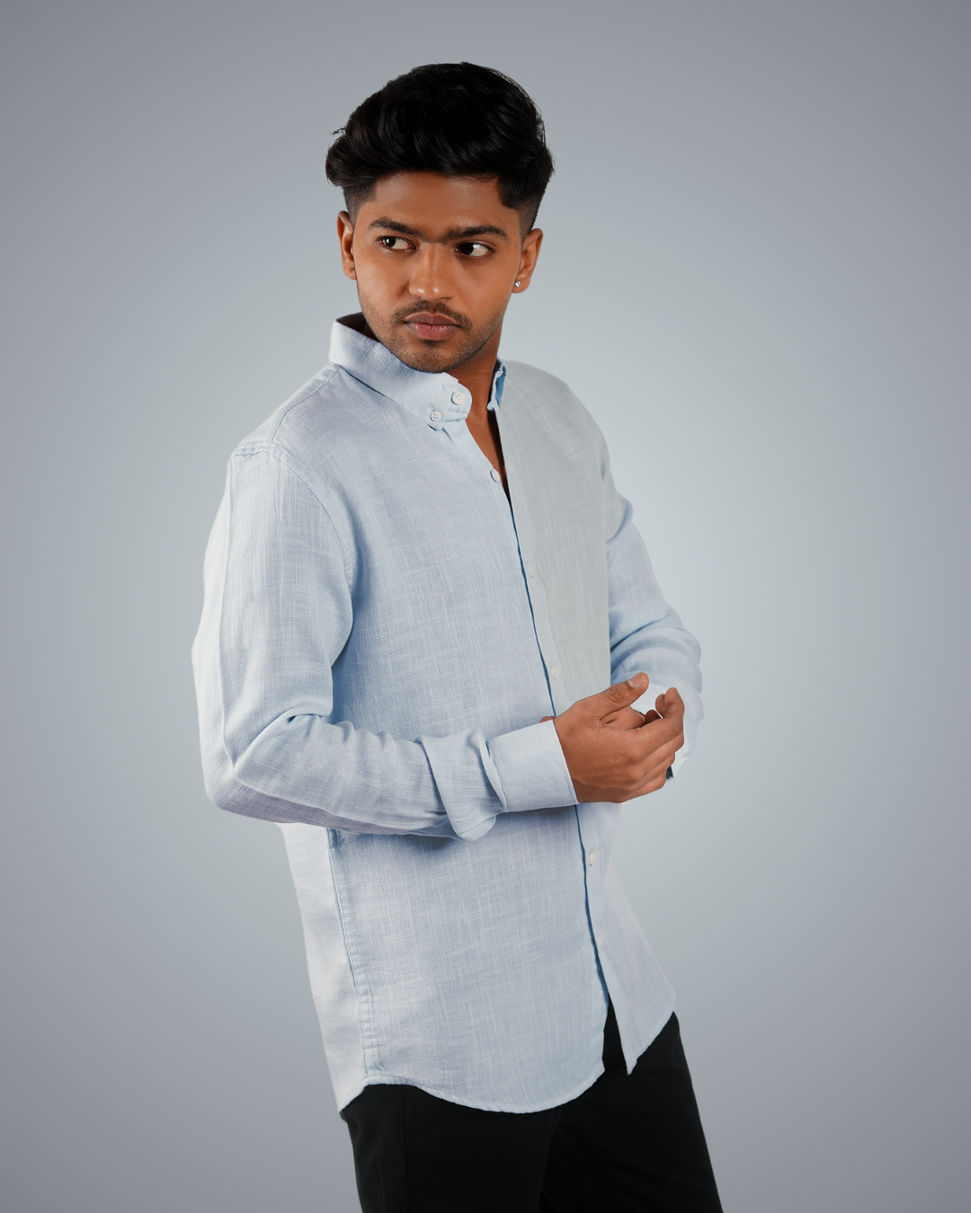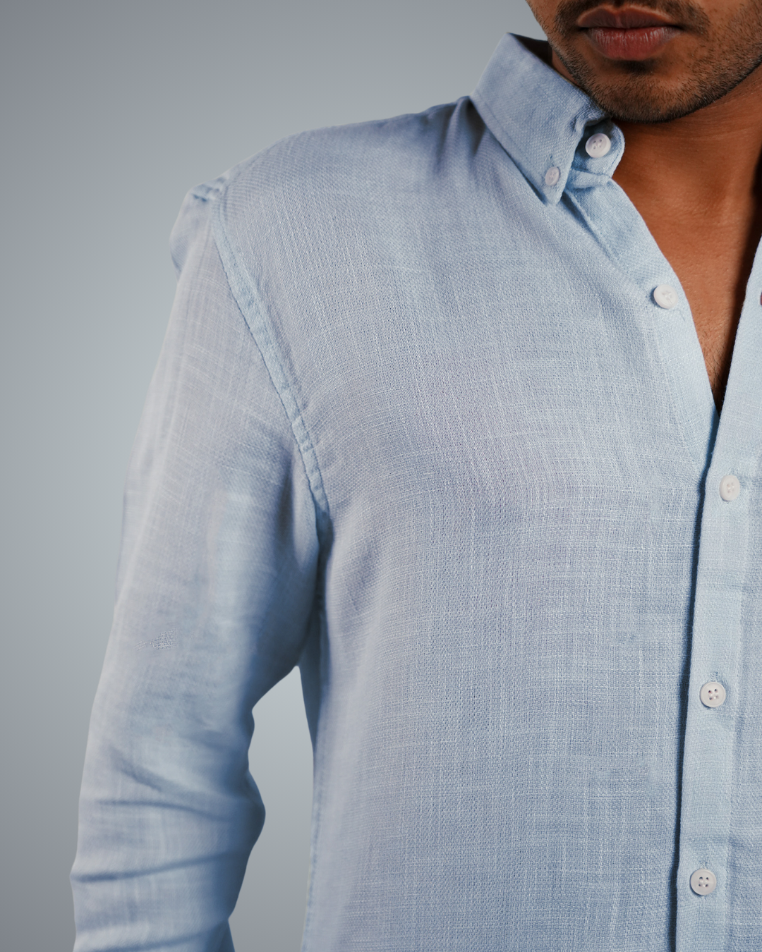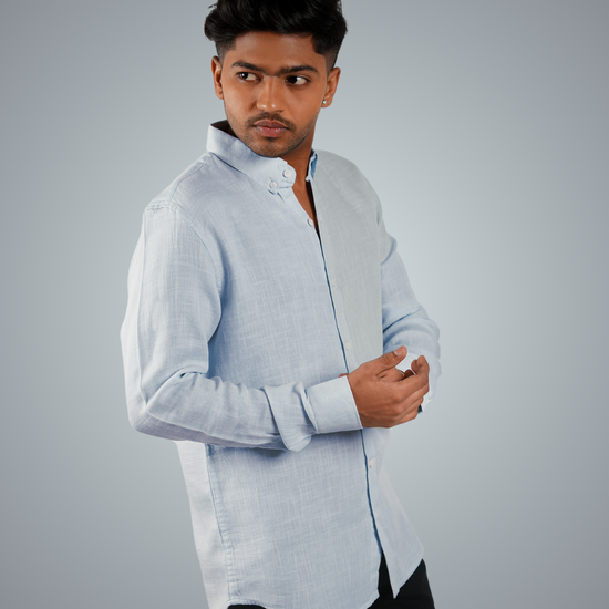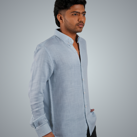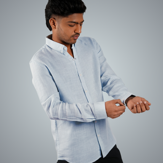 Elevate your wardrobe with this Sky Blue Linen Regular Fit Shirt, seamlessly blending casual and formal styles. Made from premium linen cotton, it ensures exceptional comfort and breathability, ideal for the Indian climate. Whether paired with trousers for the office or jeans for a relaxed outing, this versatile shirt offers timeless elegance and effortless sophistication.