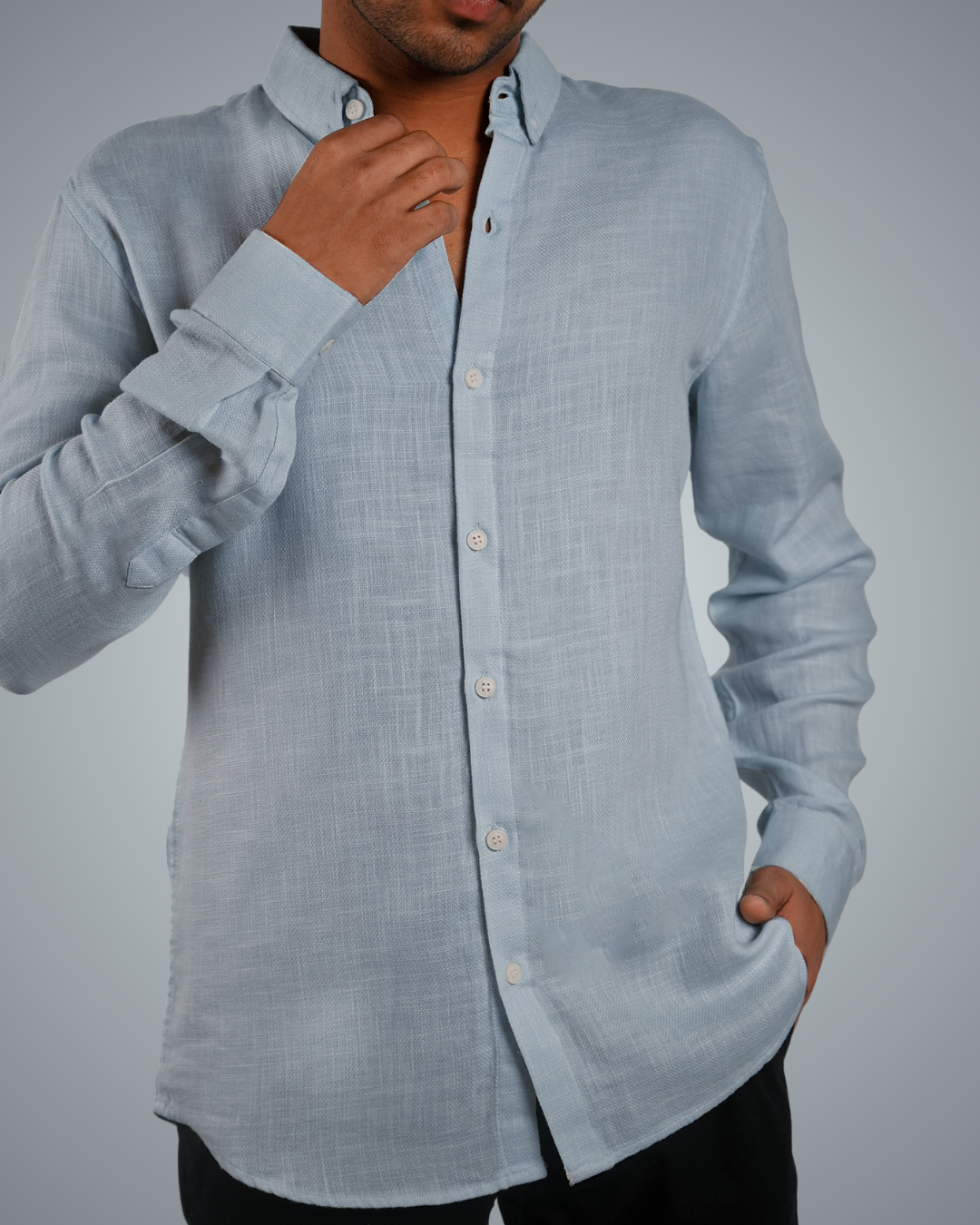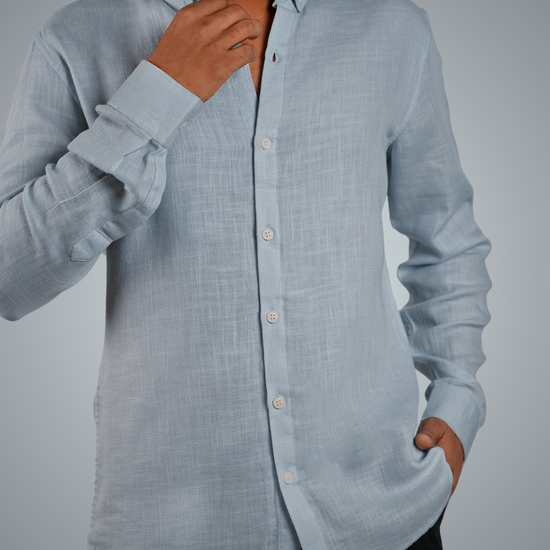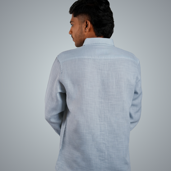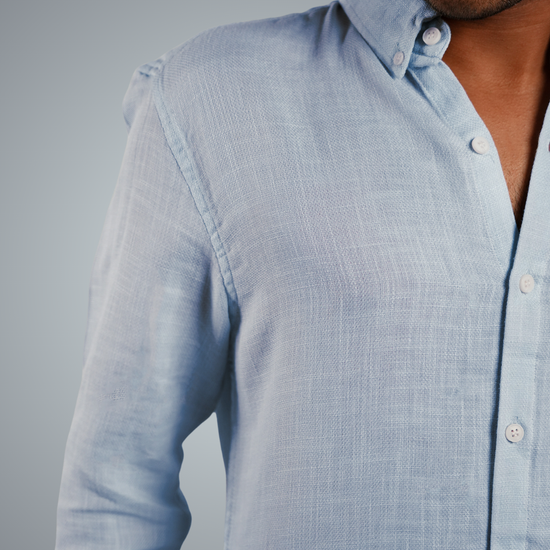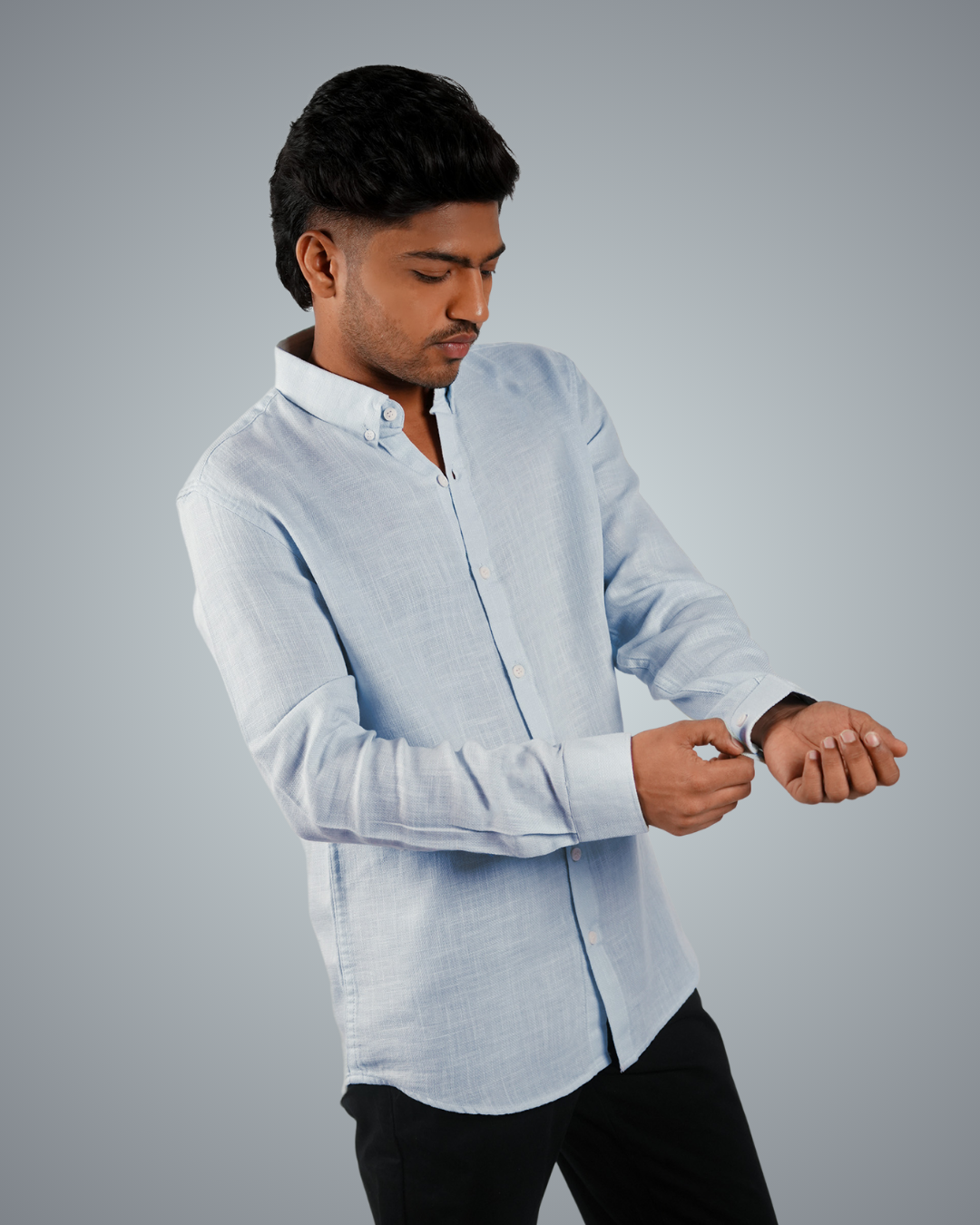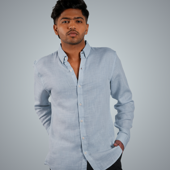 Elevate your wardrobe with this Sky Blue Linen Regular Fit Shirt, seamlessly blending casual and formal styles. Made from premium linen cotton, it ensures exceptional comfort and breathability, ideal for the Indian climate. Whether paired with trousers for the office or jeans for a relaxed outing, this versatile shirt offers timeless elegance and effortless sophistication.