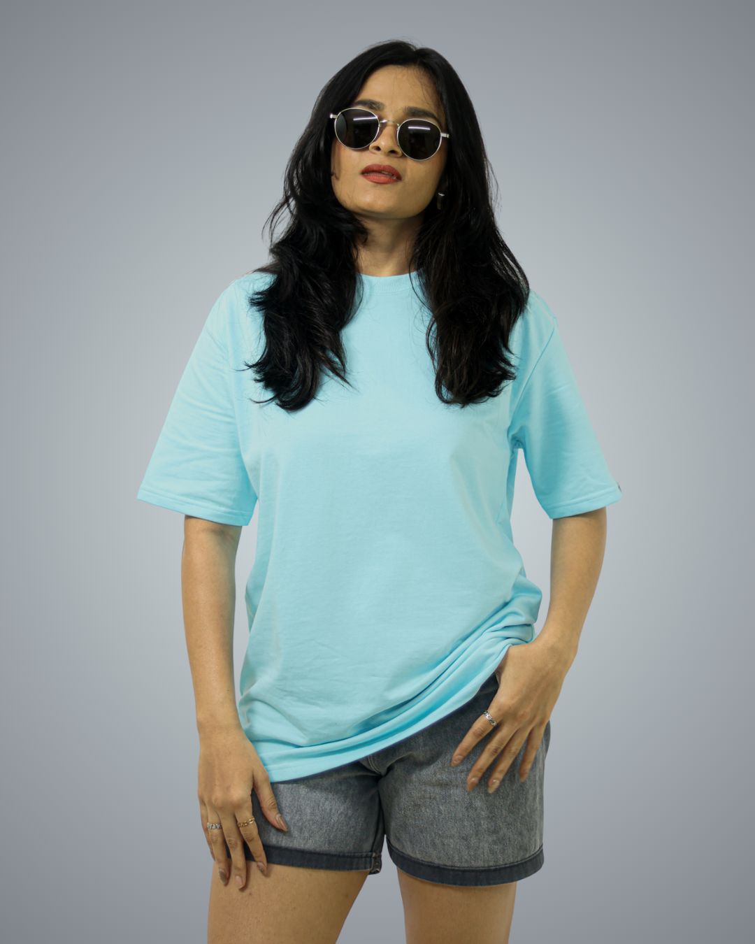 Sky Blue Oversized Fit Tshirt For Women